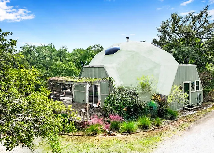 Dome River House Wimberley is a serene retreat nestled in the picturesque Texas Hill Country, just 80 kilometers from San Antonio International Airport. This idyllic getaway is expertly designed to blend comfort and luxury, making it a perfect haven for families, couples, and adventurers alike. Surrounded by lush landscapes and the soothing sounds of nature, guests can indulge in a break from the hustle and bustle of everyday life.